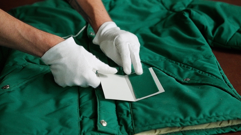 Of all the colors in the archive, REI Green proved the hardest to pin down. The team scoured catalogs and jackets before finding the right match: a cotton twill parka with a hint of turquoise that stood out from every other green.