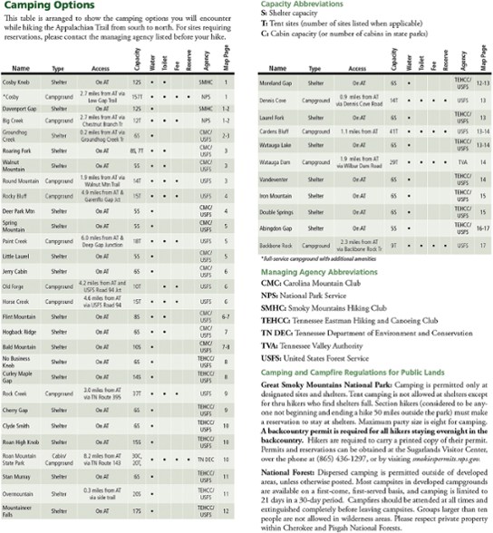 - Helpful trail profiles show the distance between shelters, camping areas and trail access points