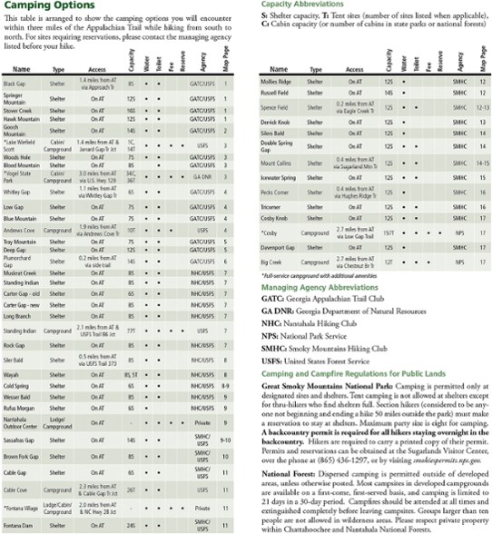 - Helpful trail profiles show the distance between shelters, camping areas and trail access points