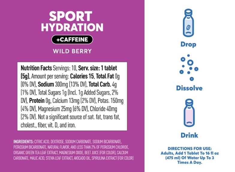 Breaking a sweat? Pop a NUUN Sport + Caffeine hydration tablet into your water to help you go the extra mile. These tablets are packed with electrolytes and caffeine from organic green tea extract.