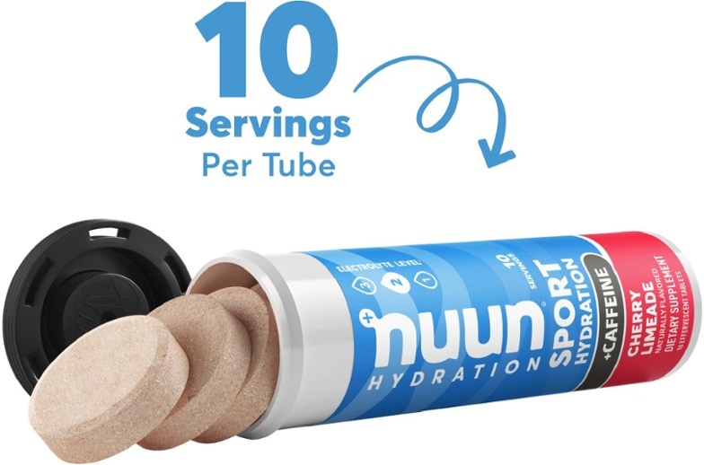 Breaking a sweat? Pop a NUUN Sport + Caffeine hydration tablet into your water to help you go the extra mile. These tablets are packed with electrolytes and caffeine from organic green tea extract.
