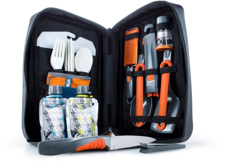 The GSI Outdoors Destination Kitchen Set 24 is a 24-piece set that includes 4 cutlery sets, folding tools, a cutting board, utility knife, spice shakers and much more to complement your camp kitchen.