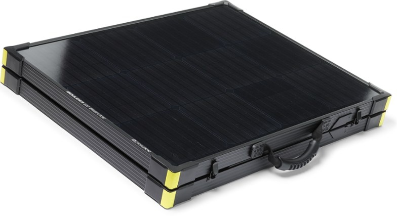 Combining the strength of a rigid panel with the convenience of a folding design, the Goal Zero Boulder 100 solar panel briefcase consists of 2 powerful Boulder 50 solar panels hinged together.