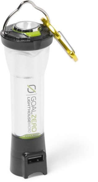 The Goal Zero Lighthouse Micro Charge lantern is a flashlight, hanging light and recharger. This all-in-one solution charges up from any USB port and stows easily in your purse or backpack.