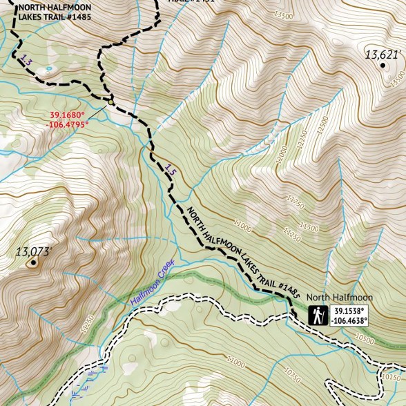 - Shows access to Mount Massive from the North Halfmoon Trailhead and the Colorado Trail, plus North Halfmoon Lakes area and the trails near the Leadville National Fish Hatchery