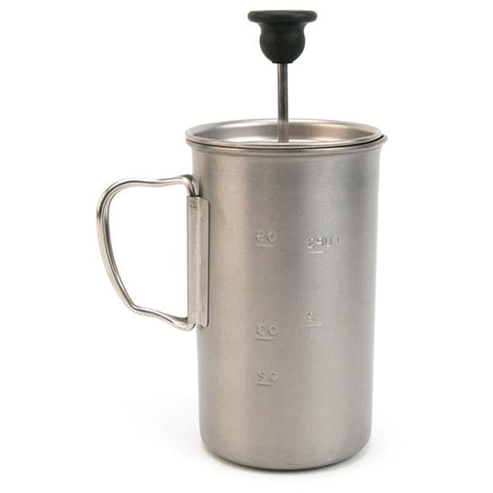 The Snow Peak Titanium French Press is the perfect way to enjoy great coffee while camping or backpacking, without adding a bunch of extra weight to your pack.