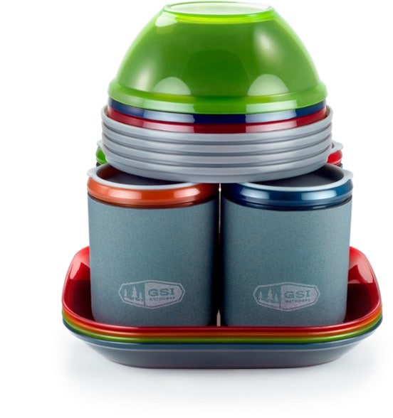There's no chance of losing track of your tableware with the GSI Outdoors Infinity 4-Person Deluxe table set. It's composed of brightly colored, instantly recognizable BPA-free bowls, mugs and plates.