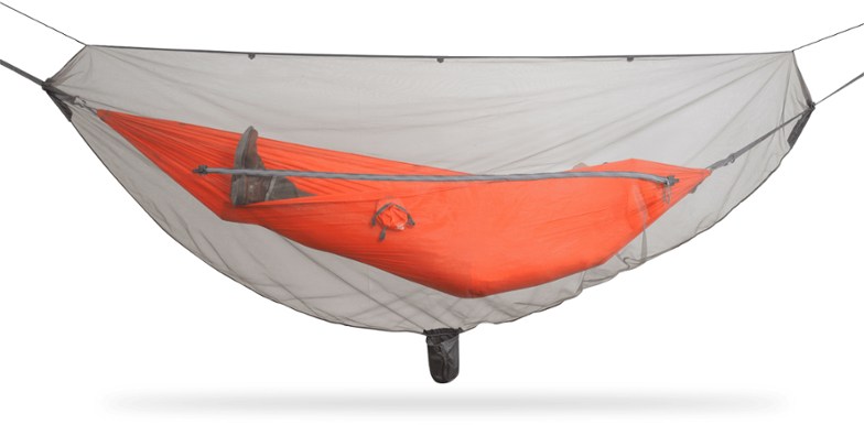 I really have to sing the praises of this item. The mesh is so fine that absolutely nothing will wiggle through while you rest. Myself and two other hammock campers used Dragonflies on a trip in Cascade, Idaho. No one got a single bite. Another aspect that I really applaud is the two-tone color that allows you to see the stars as if there was nothing above you. It honestly took my breath away the first night. Really magical. Great idea with that one. These are also very easy to get over your hammock and back off when breaking down camp. I was very pleased by that as we setup in the pitch black of night.