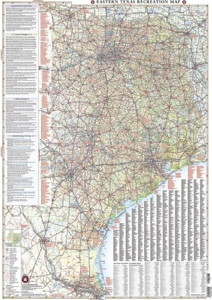Showing the richness of recreation potential in the Lone Star State, this Benchmark Maps Eastern Texas Recreation map is a must-have for traveling around the country's second largest state.