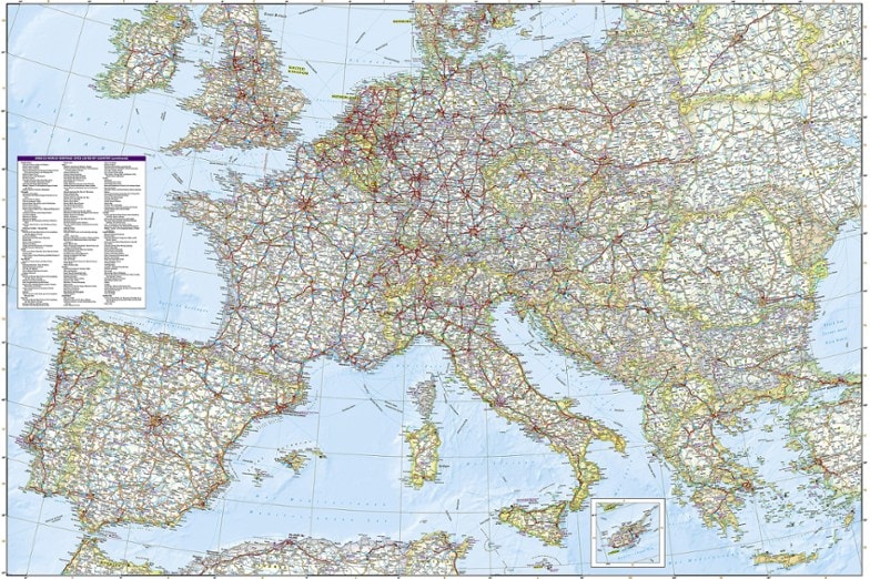 This detailed National Geographic Europe adventure travel map depicts major roads, ferry routes and thousands of destinations to help you navigate from mega-cities to small towns in the hinterlands.
