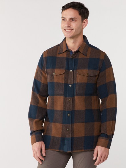 Warm and sturdy for harsh winter days on the trail, the men's Fjallraven Canada shirt is made with heavy-duty wool that works as a cozy shirt-jacket for chilly days or a mid layer for icy weather.