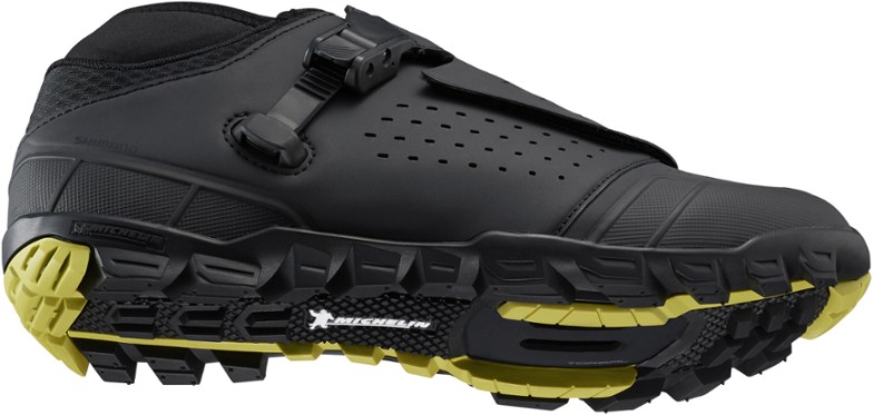 Premier enduro and multi-condition trail shoes, Shimano ME7 men's mountain bike shoes offer lightweight pedaling efficiency plus the durability, grip and armor that aggressive trail riders require.