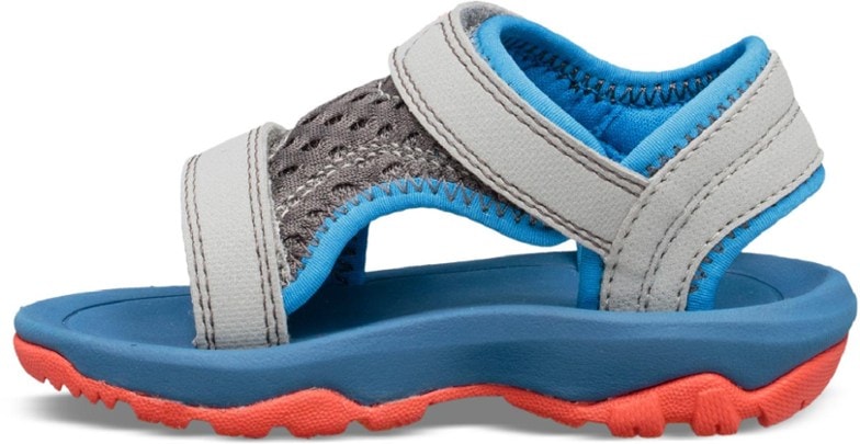 I bought the dark blue for 13 mon grandson, Toddler Sizes 4 and 5, because I was not sure of size. Smaller size fit perfectly, but I also kept the Size 5 because these are such Great sandals for toddlers learning to walk. No Tripping! "Kudos" to the design as I can get these BOTH on in 10 seconds. They are adjustable and stay on with no tight, skinny strap rubs. Cute and well-made...Teva Tough!