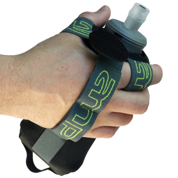 I'm so thankful to have found this! No sloshing, bottle collapses with each (easy) drink of water, and fluids stay cool since there's a barrier between the bottle and your hand! Straps are comfortable for holding -can hold in a variety of ways. I do not use the drawstring (haven't really taken the time to figure out what it does because the system works well without). Gels stay nicely in the compartments. There's a strap at the bottom that you can slide a finger through once partway through drinking that keeps the system from swaying without holding a tight grip.