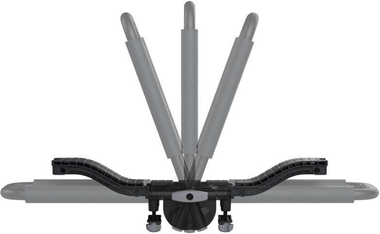 The rack holds our kayaks well. Unfortunately, on the first use, one of the gray elongated knobs to tighten the rack stripped. The mechanism functions, but we have to use a wrench when it was designed to be hand tightened. It is not a huge problem, since we had a wrench with us when it happened, but we did spend $500 on the system. We have been trying to rectify this with Thule for three months and counting. They finally shipped a new knob but there is no obvious way to remove the original. The second knob on the racks is showing signs of wear and won’t last much longer. REI hasn’t had this item in stock or we would have exchanged this. Thule’s customer service has been a disappointment given their reputation.