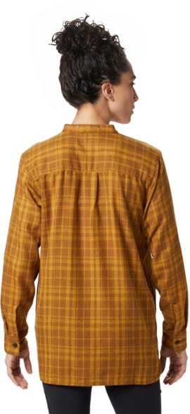 This lightweight brushed cotton flannel offers ease of movement with underarm gussets and a button-up front. Wear the women's Mountain Hardwear Makena shirt on your adventures both far and near.