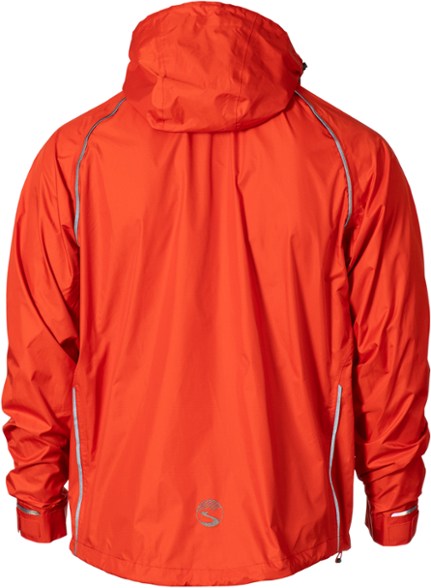 You might think, from the name "Showers Pass" and the photos on the website, that this jacket is waterproof. You'd be totally wrong. You might also think that a cycling jacket would have a pocket or pouch in the back, rather than just two side pockets. You'd be wrong about that too. It's also not particularly warm. This is the most disappointing purchase I have made in decades of shopping at REI. I'm returning it for sure. If you're thinking about buying this jacket, "Just don't do it!"