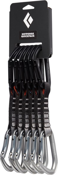 Ideal for cranking on sport routes or extending gear placements, the Black Diamond HotForge Quickpack set of 6 quickdraws features straight-gate HotForge carabiners lashed to bent-gates.