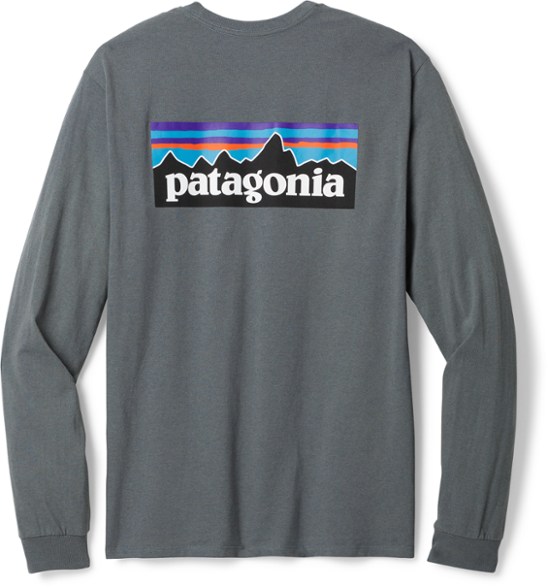 Made from sturdy recycled cotton and postconsumer recycled polyester, the men's Patagonia LS P-6 Logo Responsibili-Tee long-sleeve shirt has taped shoulder seams for comfort and fit retention.