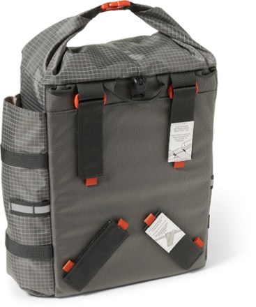 These panniers are just what I was looking for: somewhat small, with a pocket for carrying tent poles vertically, robust, and with a good attachment system for traversing rough trails. I attach them to the front of my bike with a Tubus Grand Expedition Front, which allows the four velcro loops to securely attach. After I empty the panniers at camp, I can cinch them down and go exploring. I don't believe the listed carrying capacity of 18L: when you compute the volume, it is around 13L, and that seems to be my experience (maybe around 14L), but how do you measure for sure? I've carried firewood several miles down a gravel road in the panniers (while protecting the bags with cardboard), which proved their robustness even more to me.