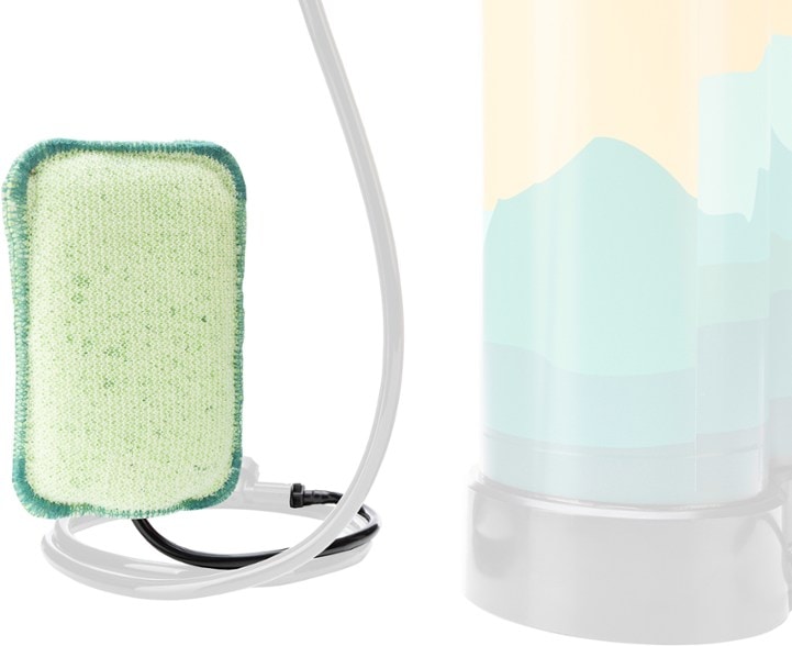 The Geyser System is efficient and easy to use! If you have long hair, you might need to keep an extra 32oz of water nearby to top off your shower. Sponge attachment has 2 sides one rough which works perfectly for exfoliation and one regular.
