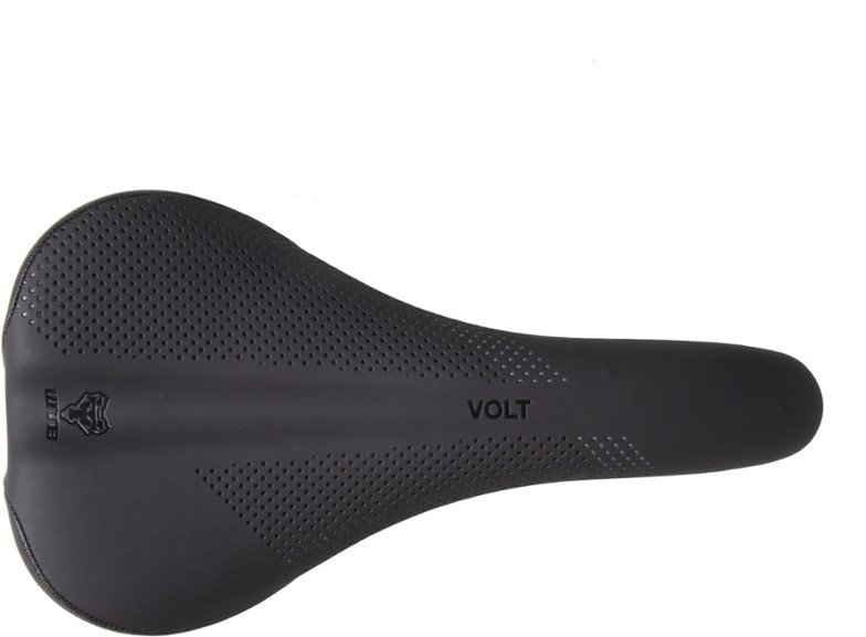 Time-tested and -proven, the WTB Volt steel saddle is shaped for speed and comfort off-road, with medium paddling, a gentle drop to the nose and an upward-curved tail to push against while pedaling.