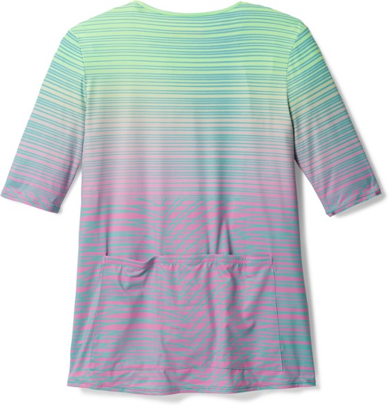 Minimally styled and loose fitting but outfitted with rear pockets and full sun protection, the women's Terry Soleil Flow cycling top keeps you comfortable on and off the bike.