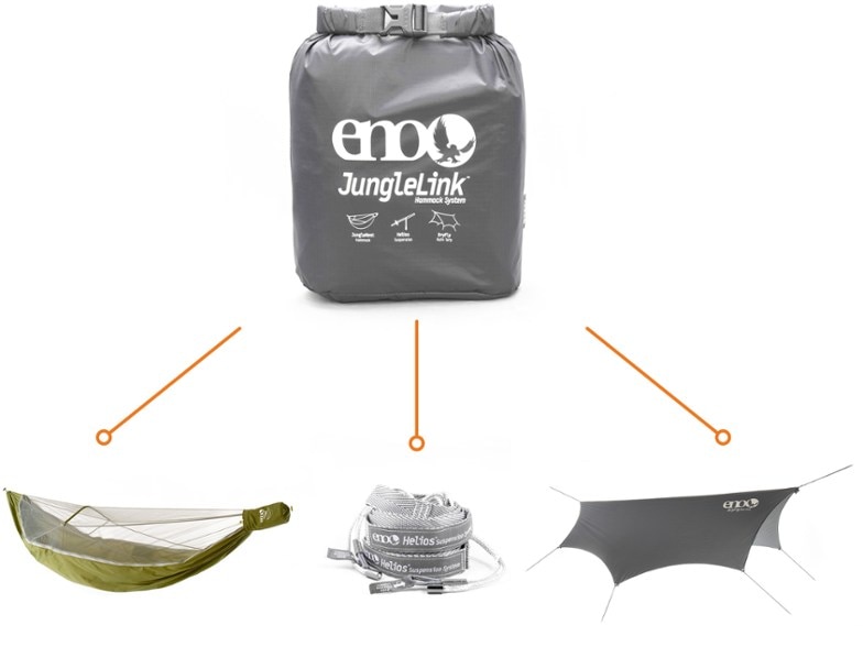 I love this setup. I recently purchased the ENO OneLink kit for my son, but I didn't love the setup process of features for my kit, so I ended up buying this to try out, and I love it. The integrated bug net and spreader bar were the selling points. The DoubleNest and bugnet combo on the OneLink just felt too claustrophobic. The Junglenet felt open and spacious by comparison. Unexpectedly, I found the setup process for the JungleLink to be far superior and faster. The whoopie sling was quick and easy to adjust. The built-in ridge line was a huge plus. I love that the stuff sack stays on the line. There are two built-in storage areas. My son even liked it so much better that we returned his OneLink and bought him the JungleLink kit, too.