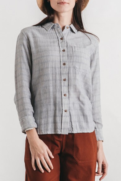 A slim-fitting button-up design with a single chest pocket, the women's Bridge & Burn Ash shirt is made of naturally breathable cotton to keep you cool and comfortable.