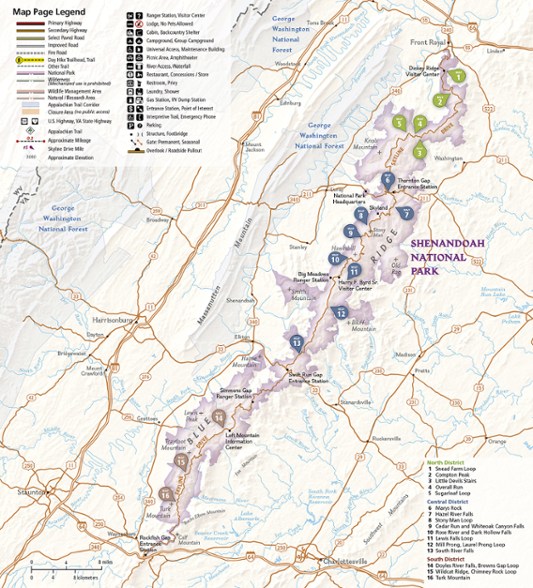 Shenandoah National Park rises above the Virginia Piedmont to its east and the Shenandoah Valley to its west with 2 peaks, Stony Man and Hawksbill, exceeding 4,000 feet. The park hosts over 500 miles of trails, including 101 miles of the Appalachian National Scenic Trail. Trails lead to cascading waterfalls, stunning panorama viewpoints and deep into forest and wilderness.