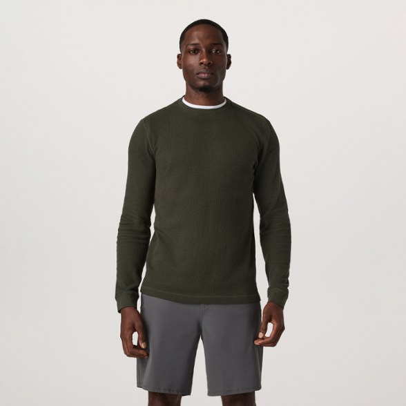 Crafted like a classic thermal, this men's Vuori Waffle crew shirt can be layered or worn solo. Its breathable-yet-cozy fabric is great for traveling, running, hiking and—most importantly—chilling.