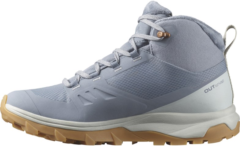 Built for the mountains as well as everyday city life, the women's Salomon OUTsnap CSWP boots are lightweight and athletic. They offer full weather protection, a mid-cut height and 3-season warmth.