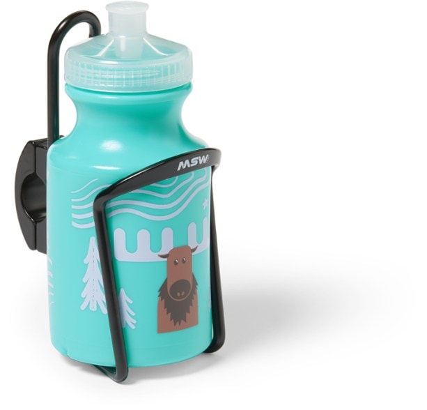 Perfect for keeping quick and easy hydration within reach of tiny hands, the kids' MSW Water Bottle and Cage Kit mounts to standard 22.2mm handlebars and features a kid-friendly design.