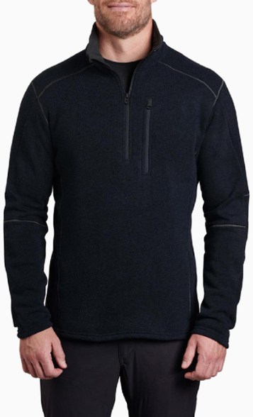 I bought this for my BF and is the first Kuhl item he's ever owned. The black color is so versatile, is warm, he can dress it up with khakis and jeans or dress it down with joggers. The material, the hems, the zippers, the fit screams "look at me" and the quality is as expected for this brand, simply EXCELLENT.