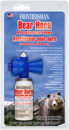 Louder than a bear bell, the FRONTIERSMAN bear horn blasts 115 decibels—it can be heard up to a half mile (805 m) away. Periodic blasts warn bears in the area. It can also alert hikers if you're lost.