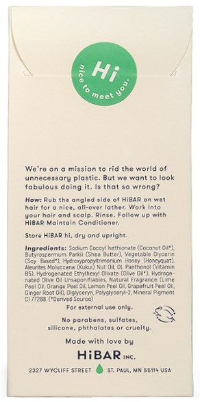 - 1 HiBAR shampoo bar is equivalent to 16 fl. oz. of liquid shampoo