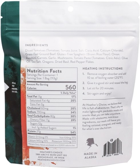 You won't find mom's cooking in the backcountry, but at least you can imagine it with Heather's Choice Grass-Fed Beef and Spaghetti with Marinara Sauce, a comfort staple to refuel after a hard hike.