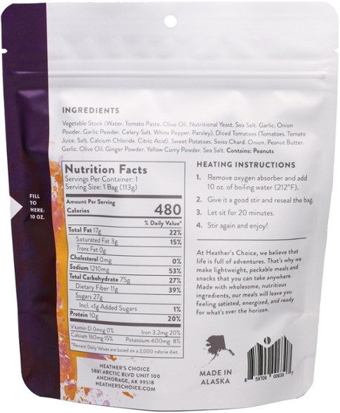 Hard hikes call for settling down to hearty meals like Heather's Choice African Peanut Stew. Made with peanut butter, curried vegetables and spices, this nourishing, vegan-friendly dish hits the spot.