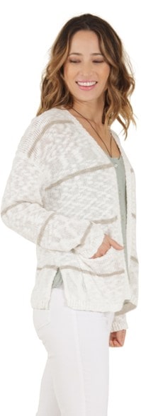 On cool spring and summer nights, reach for the lightweight, soft Carve Designs Kirby cardigan to warm up. Its loose, open styling makes it a fashionable piece that pairs well with a variety of tops.