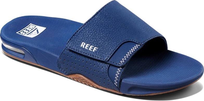 Easy on, easy off, easy everything. These men's Fanning slide sandals from Reef deliver water-friendly features, all-day comfort and a built-in bottle opener for kicking back with a cold one.