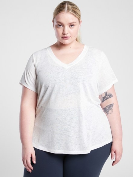 Made for warm-weather adventures, the women's Athleta Breezy Scoop V T-shirt is ready for travel, vacation or exploring the outdoors.