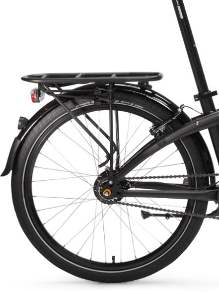 This bike is nicer than I expected! It folds up easily, and is sturdy but not heavy, so that I can fold it, pick it up and put it in the back of the car. The 24" wheels offer a comfortable ride, the gear shifting and braking functions are very smooth. The adjustable handlebars enable a variety of riding positions. Now I can get around the parks, campgrounds, beaches, neighborhood with ease! Kevlar in the tires and a pump integrated into the seat post gives me peace of mind. I like that the chain guard thing covers and moves with the chain so that I don't worry about so much sand, dirt and grit gunking up the chain and/or shifting performance. The dynamo-powered lights are quite bright and remain on even when the bike is not in motion (can be turned off). Note: it's not a silent ride. I first thought maybe the brakes are too tight/rubbing, but it's the dynamo working. It just sounds like something is rubbing on the tire. It does come with a classy bell, too. The REi bike shop staff were friendly and helpful. I ordered Luggage Truss G2 from Tern to use a retro Klickfix front frame basket (not pictured). I am old, 5'8", 125lbs. I have severe osteoarthritis, and it's very painful to stand or walk for more than a few minutes. This bike enables me to meander the paths I used to walk, without bearing weight on my joints. This bike has enhanced my quality of life.