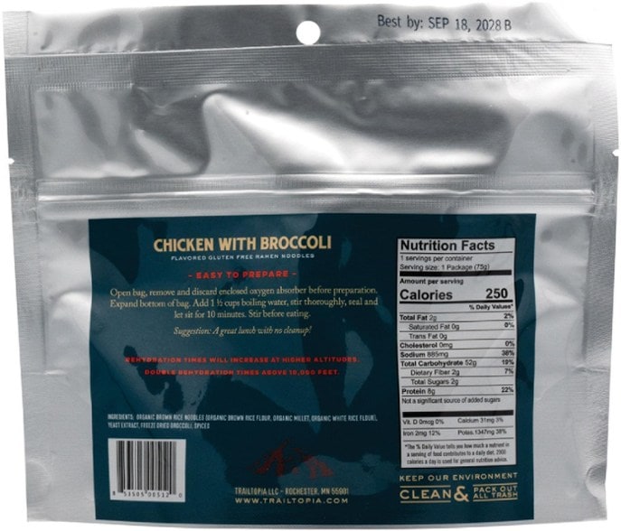 So I bought this stuff so I could make noodles with my daughter while camping. Well we went fishing in our neighborhood. And she says “daddy I’m hungry”. So I look for something easy to eat like crackers or goldfish. She is 4yrs old. I find a pack of trailopia chicken with broccoli. I fire up the jetboil and heat the water. Ten min go by and I open the package. My picky eater daughter says this is yummy. So I make another one and it is very good. Just make sure to use the correct amount of water and wait the full 10 minutes.