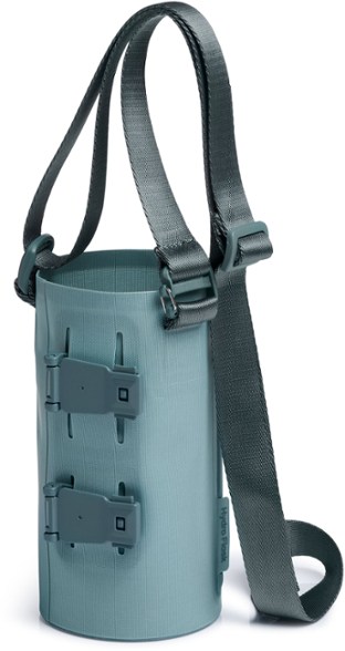 [This review was collected as part of a promotion.] This is such a convenient way to carry around a big flask with nearly two pounds of water. The holder has quite a few little thoughtful features including an adjustable strap, belt clips, and a mesh pocket if there are pouches of additives or anything else small that you want to keep in a pocket. The sleeve itself is silicone, so the flask slides in and out extremely easily, which is super helpful for a hot thirsty day. The color is like an oatmeal color, so it goes with any of the flask colors.