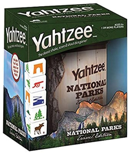 Remixed with multicolored national park icons on the dice, a travel-friendly dice cup and cool park facts, this National Parks Travel Edition of Hasbro Yahtzee shakes up the fun on your adventures.