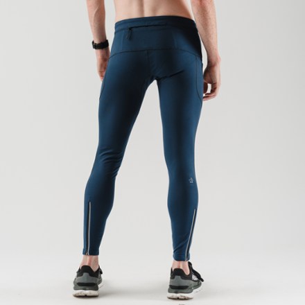 Skip the waist belt and keep your hands free with the men's rabbit Pocket Tightz. These tights have 2 side pockets to stash snacks or gear and 1 big center pocket on the back to stow your phone.