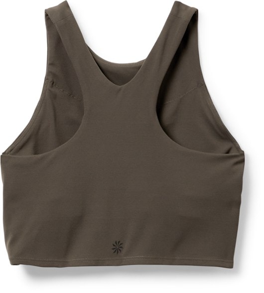 Purchased this primarily for barre class, so I didn't need a lot of support. I wasn't sure about the higher neckline because I get so hot and sweat easily, but I don't mind it at all. Perhaps the crop helps keeps me cooler? Either way, this is super comfy and cute. First time buying/owning a crop and I like it! I was also nervous about being able to get it off and on without feeling like I was wrestling with it... but it was just like any tank top. I love it and loved the price I got it for, too! Athleta is my go-to for a lot of workout clothes and this didn't disappoint! Soft fabric and has held up well to multiple washes.