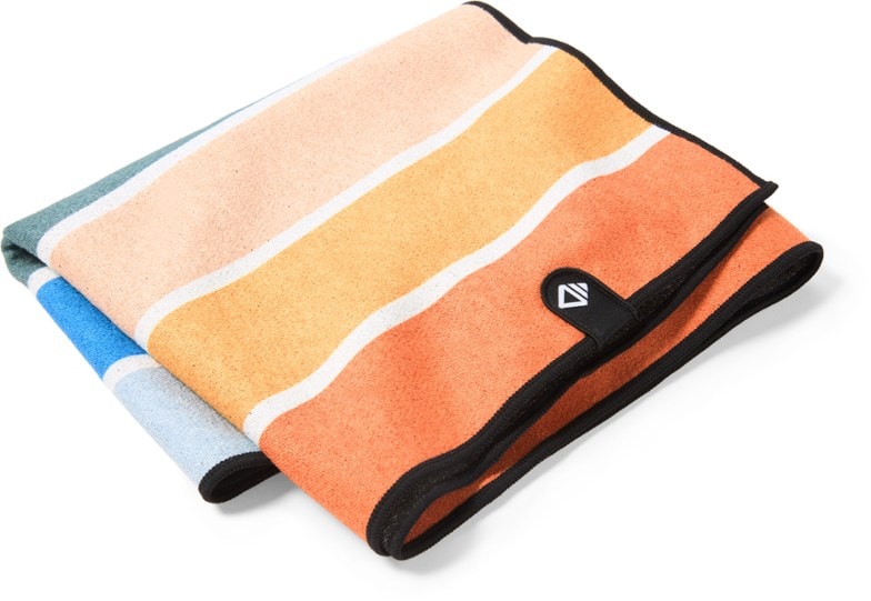 I really loved this towel and it's versatility. The towel effectively pulls off moisture while also drying extremely fast. To give you an idea of how fast it dries, I used it to dry off my feet after a creek crossing and then set it out in the sun while I drank a beverage. By the time I had finished my beverage, the towel was dry! Another great thing I love about the towel is that it doesn't really collect dust or dirt. I have used it to wipe off sweat and dirt after runs and bike rides and have dropped it in dirt and mud and the debris just shakes off. I also really like the cool designs and the elastic hook on the towel makes it easy to attach to a backpack or hydration pack. The size of the towel is also pretty ideal. It's big enough to dry off your whole body, but also small enough to easily pack (and it's super light-weight).
