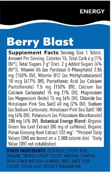 - Packed with invigorating ingredients like green tea, ginseng, B-12 and B-6 vitamins and electrolytes