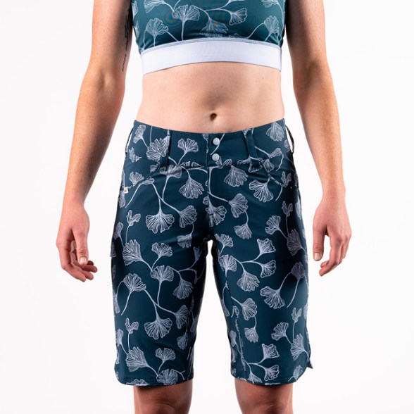 The ginkgo pattern is fun and the teal background color unusual (which is great—I have too many somber bike shorts). But alas, these shorts ran quite small, and the material had little give, so they got returned.